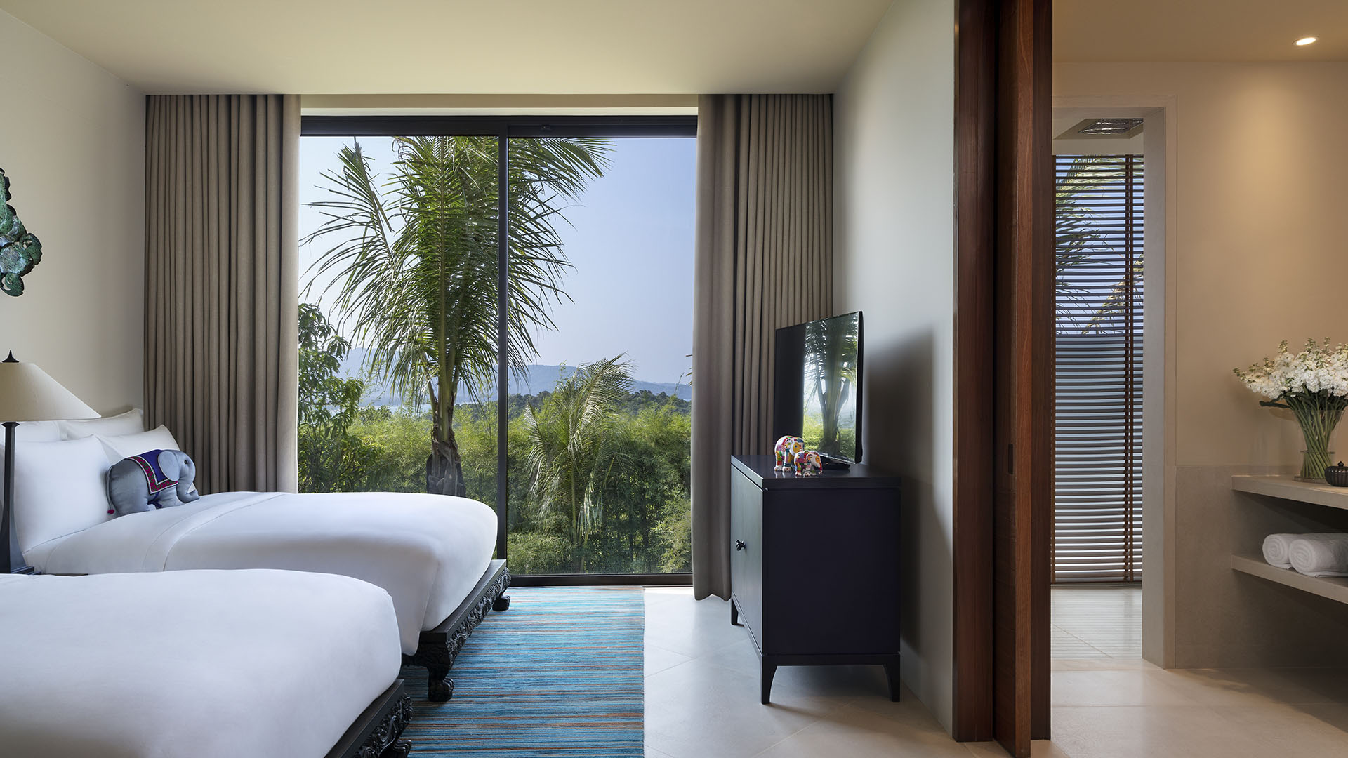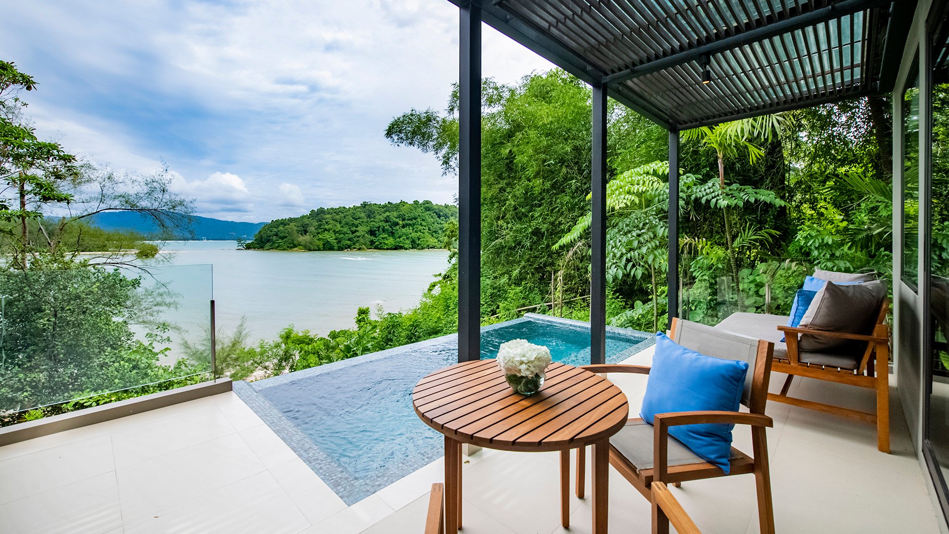 撤退到岛屿天堂,郁郁葱葱的山坡俯瞰粉状海滩。躲在豪华泳池别墅中适合两人居住,或者适合家庭居住。
