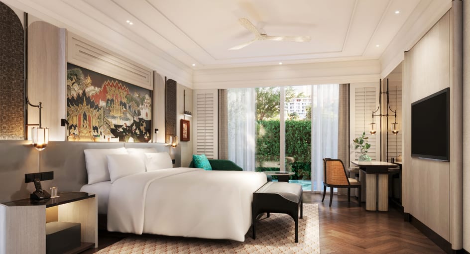 曼谷安娜塔拉暹罗酒店将无与伦比的地理位置、标志性的设计和亲切的热情好客融为一体。高高的枝形吊灯天花板、手绘丝绸壁画和郁郁葱葱的花园为这座不夜城提供了庇护所的感觉。