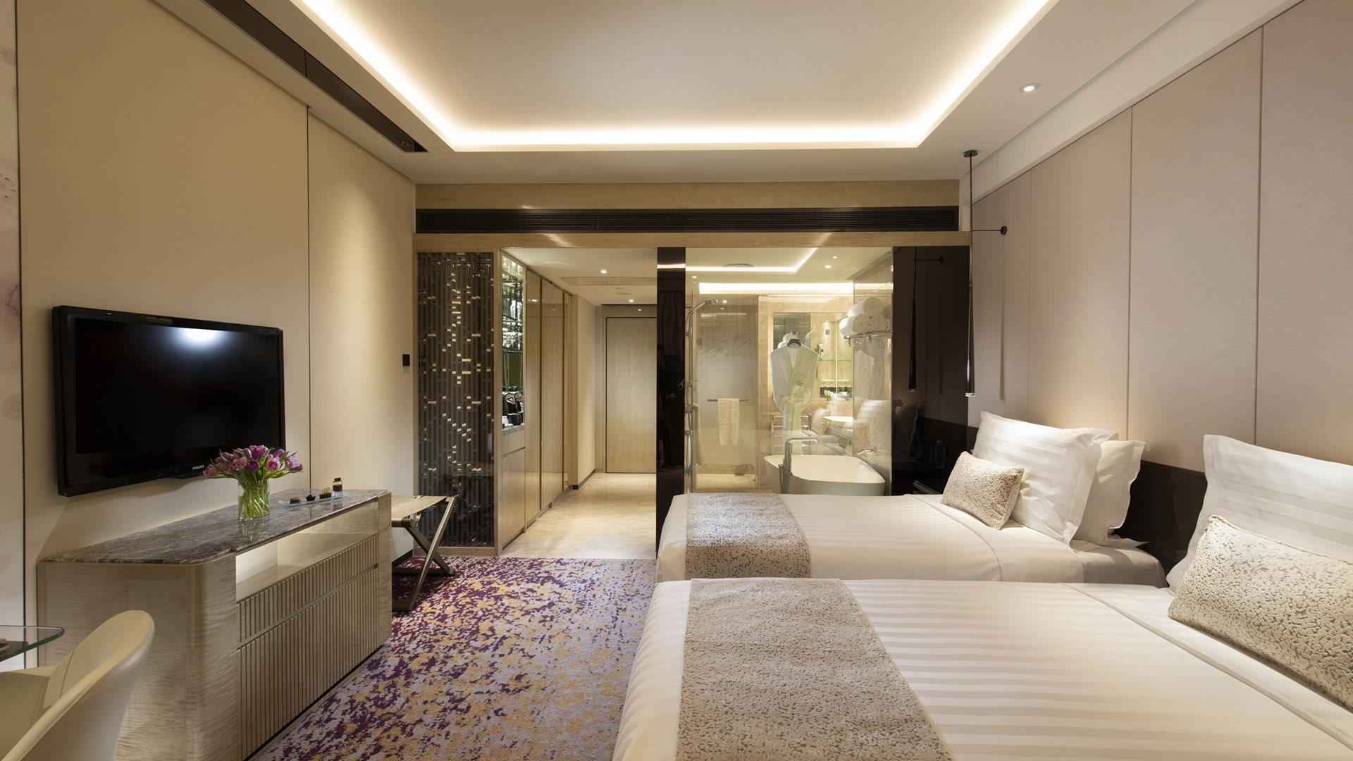 酒店巧妙融合经典隽永的欧式格调与北京深厚的历史底蕴,设有480间豪华客房及套房。在此,您可尊享无与伦比的奢华体验、一脉相承的舒适礼遇与细致周到的专属服务,更浸润着纯正的亚洲人文风情。淡雅雅致的客房内饰瞬间消解旅途疲惫,宽敞便捷的办公区域从容满足大型商务项目需求。