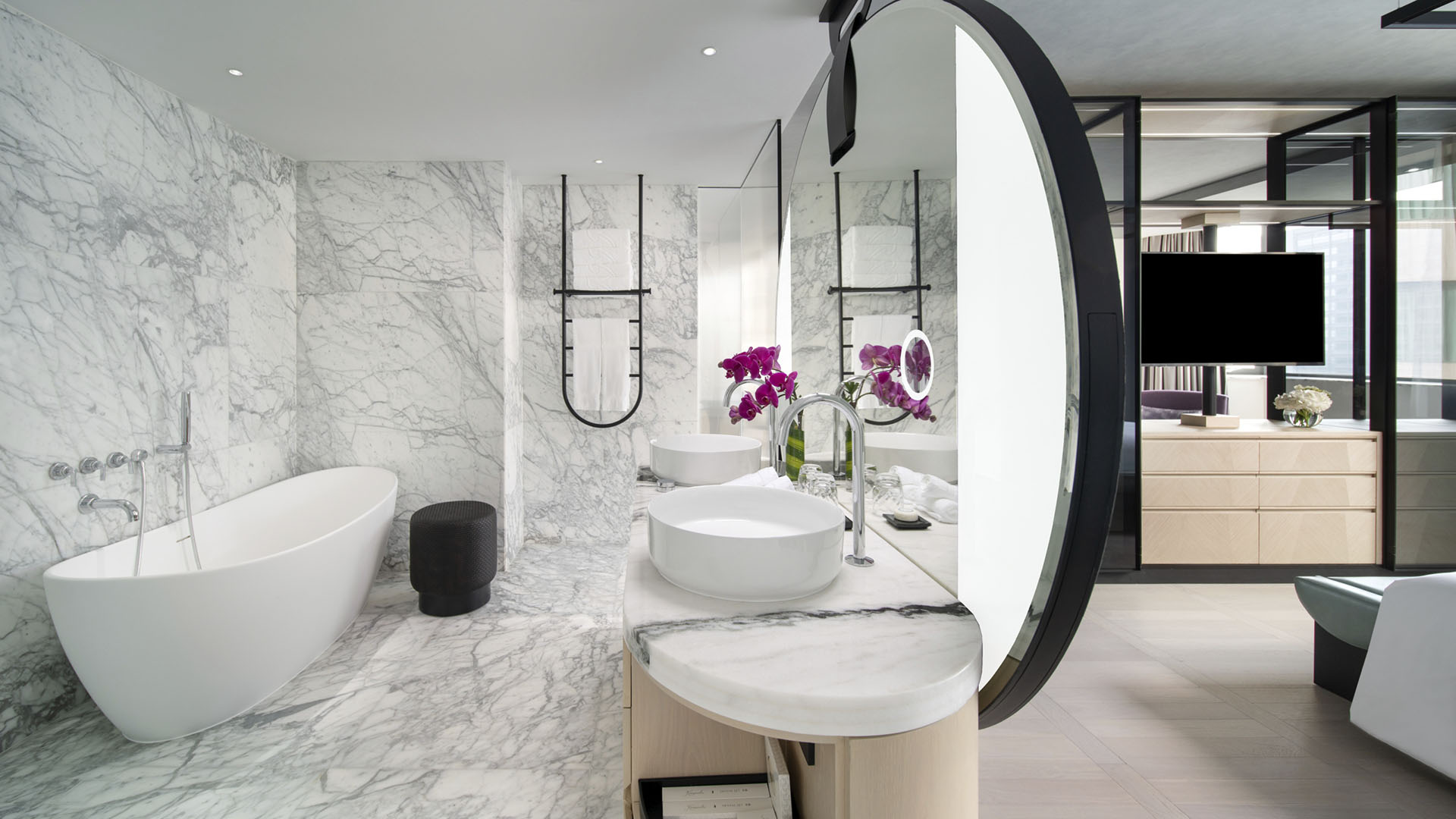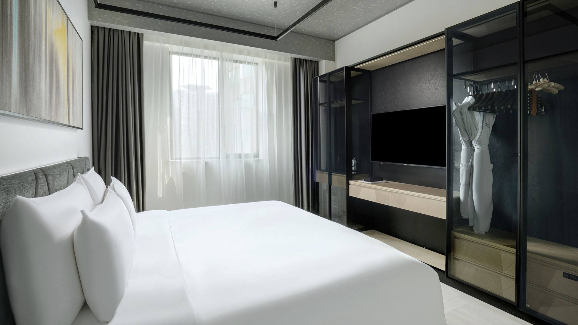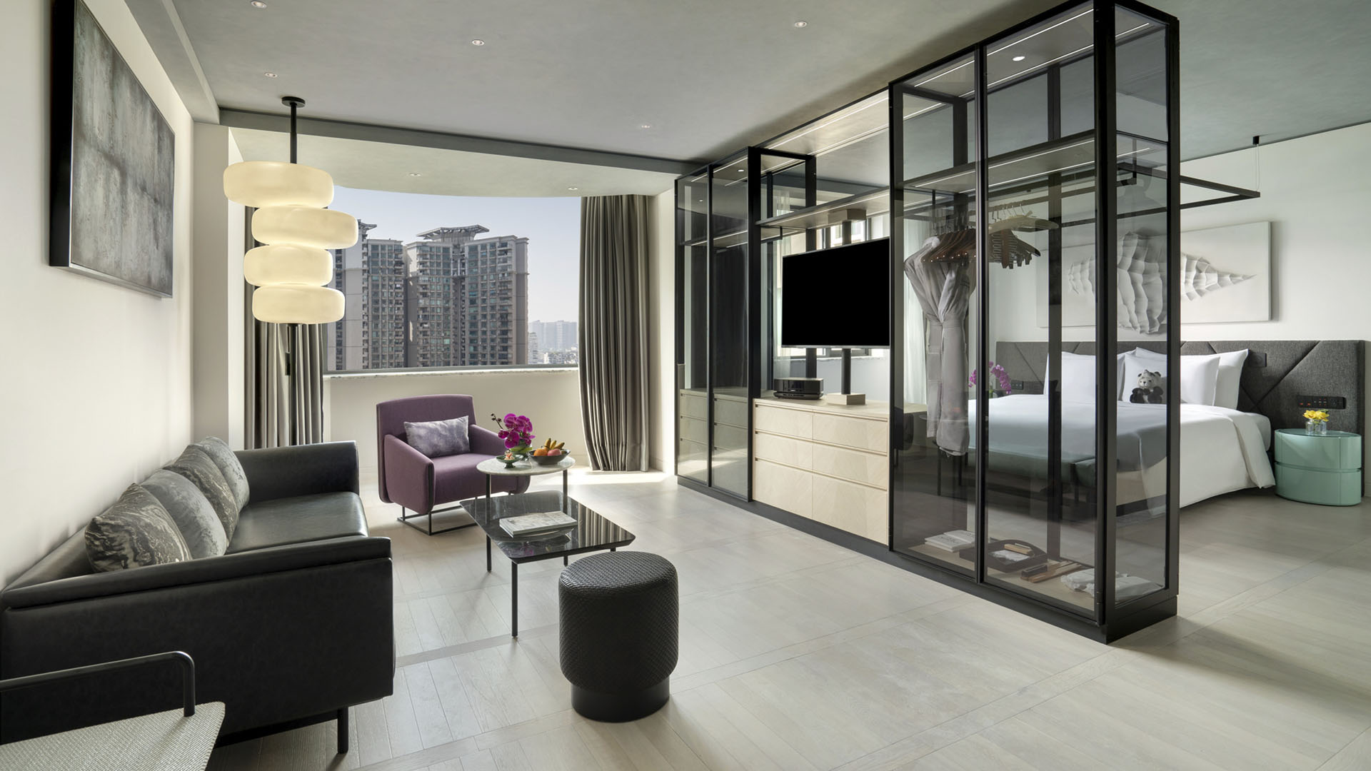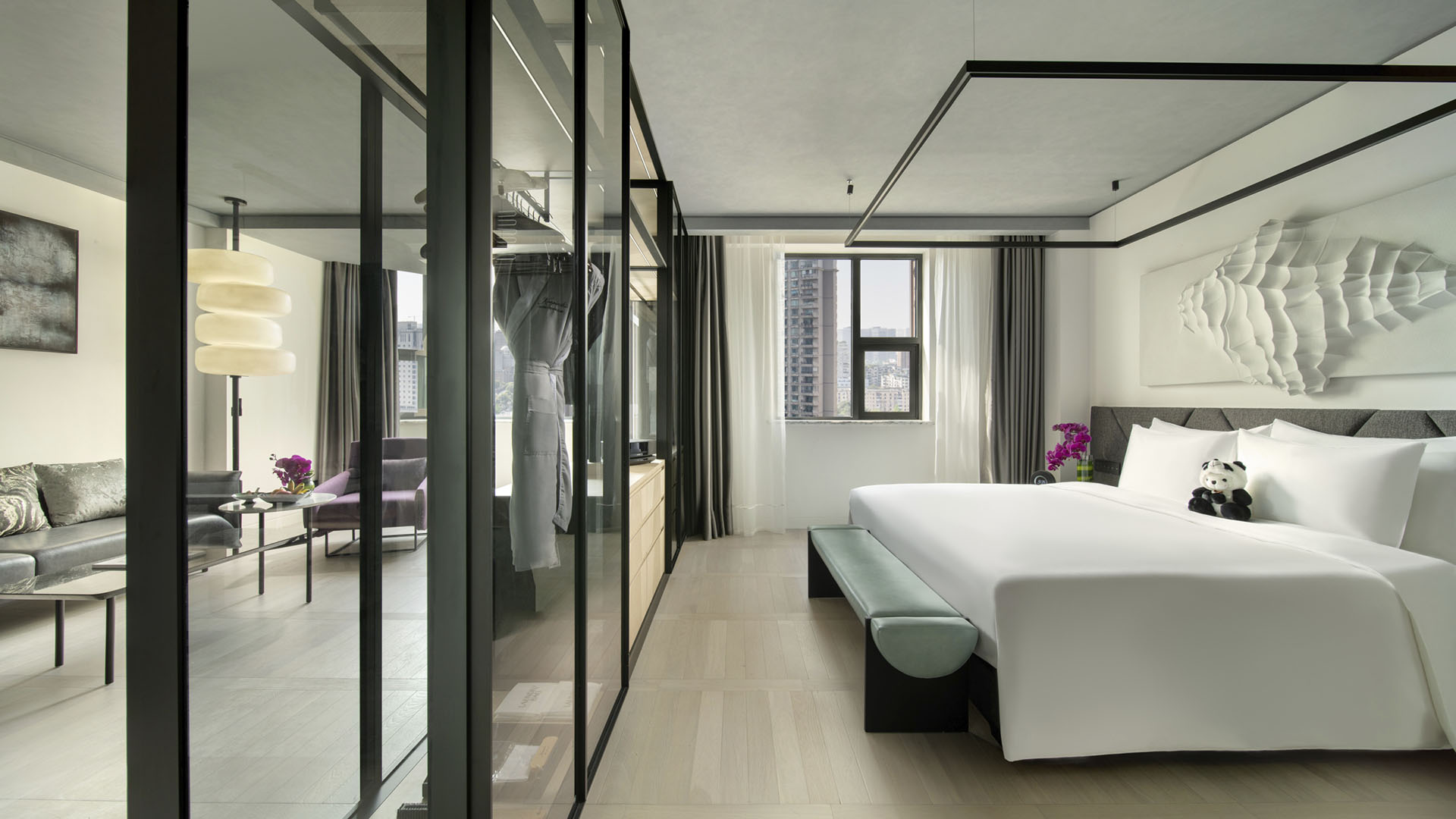 酒店拥有 471 间豪华客房与套房,每一间均为你营造私密惬意的休憩空间,推窗即可尽览城市天际线的璀璨盛景或园林的清幽雅致。客房内饰采用考究的都市风尚色调,点缀灵动亮色,充盈着充沛自然光。每间客房均配备写字台、阅读区,以及带有独立淋浴间与浴缸的宽敞浴室。