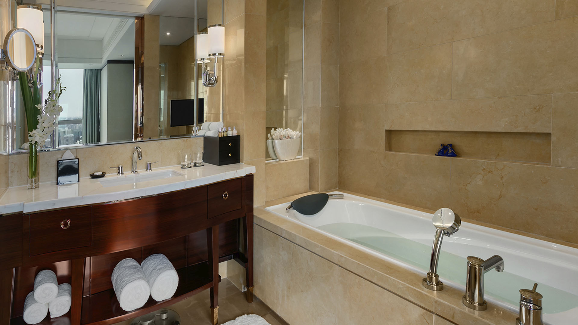 酒店拥有 460 间奢华客房及套房,其中包含尊享 24 小时管家服务的传奇凯宾斯基行政楼层。无论空间大小,每一处居所的设计都旨在为宾客焕活身心。你能感受到明快通透的格调、简约利落的现代线条,以及恰到好处的自然肌理与色彩搭配,营造出满满的舒适惬意感。沐浴在充足的自然光中,你既可安然休憩,也能专注高效地处理事务。