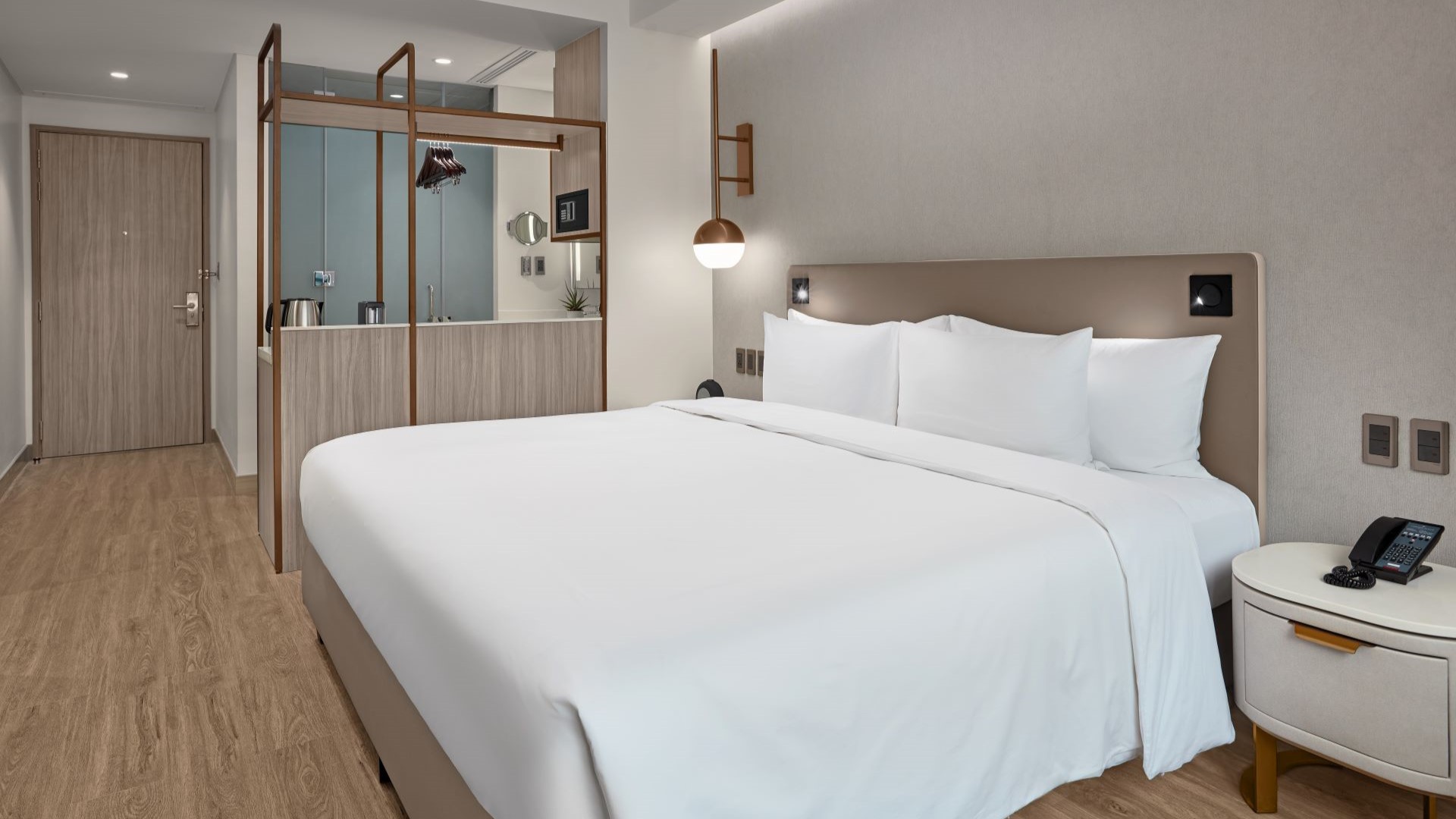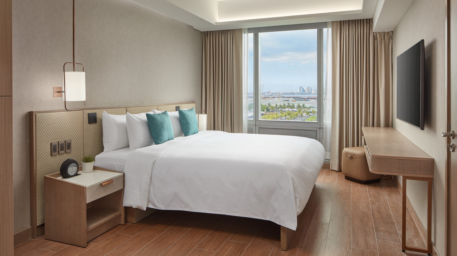 在 Lanson Place Mall of Asia, Manila 酒店,体验湾畔精致旅居。酒店巧妙融合现代优雅与菲律宾式热情待客之道,坐拥马尼拉湾美景,举步可达充满活力的 SM Mall of Asia 购物中心。 无论是短暂休憩还是长居久住,精心设计的客房与套房均散发着内敛奢华的格调,氛围舒适悦人,为您营造理想的居停空间。您可在屋顶无边泳池恣意畅游,亦可在设备齐全的健身中心保持日常锻炼节奏。 若想寻觅片刻悠闲或社交时光,池畔酒吧 BLK12 Café|Bar 弥漫着静谧氛围,并提供特调酒单;Cyan Modern Kitchen 餐厅则在时尚环境中,为您呈现缤纷国际美馔。无论商务出行、合家度假还是旅居长住,贴心服务与无缝衔接的便利设施,总能在每个细节让您感受归家暖意。酒店距离标志性的 Mall of Asia 购物中心仅箭步之遥,直通高档购物商店、多元餐饮食肆和娱乐场所。 加之邻近城内中央商务区和机场,Lanson Place 诚然是兼顾工作、休憩与城市探索的理想大本营。