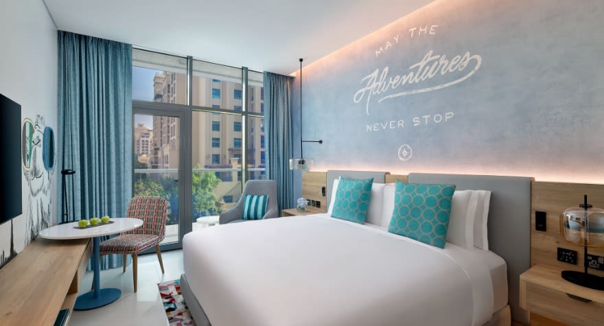 迪拜棕榈岛诺翰精选酒店诚邀宾客在其黄金地段享受这座城市的独特乐趣,同时享受酒店的服务非常出色。 距现代酒店仅几步之遥的是专属私人海滩俱乐部,俯瞰着酒店的屋顶无边泳池。在这些通风现代的空间中,别致而鼓舞人心的装饰与地道的当地特色无缝融合,配有舒适的特大床或双床。 透过窗户眺望迪拜繁华的城市,只等您来探索。