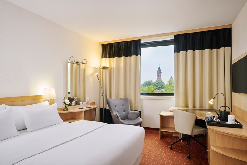 奥伯豪森诺翰酒店位于该市的历史中心。 客人只需步行 5 分钟即可抵达火车总站, 112 路电车站就在酒店外。 这些可让您前往城市的顶级景点,如乐高乐园、奥伯豪森海洋生物馆和德国最大的购物中心 CentrO。奥伯豪森诺翰酒店拥有 172 间时尚明亮的客房。 每间客房均配有空调和免费无线网络连接。 每个房间还配有一张大桌子,以防您需要完成一些工作。 我们拥有 6th-floor 间客房,可欣赏到令人惊叹的城市景观。 您可以享用酒店餐厅提供的自助式美味早餐来开始新的一天。 有多种选择,包括冷盘、奶酪、面包、糕点、果酱、酸奶、水果等等。 如果您想享受更加休闲的选择并放松一下,我们有一个时尚的现代酒吧。 想要放松和锻炼的客人可以使用我们的健身房和桑拿浴室。 酒店还设有五间会议室,最多可容纳 200 人。