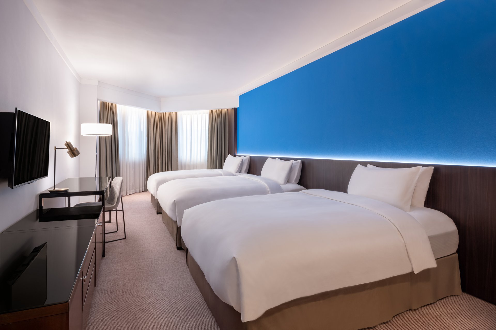 在太子酒店,香港,您将从394间客房及套房中进行选择,其现代感与姊妹酒店一脉相承。灰调色调营造宁静氛围,点缀以低调的色彩亮点,整体呈现干净利落的当代风格。无论是家庭旅客还是商务人士,结束一天的城市活动后,回到这些放松舒适的居所都将倍感惬意。