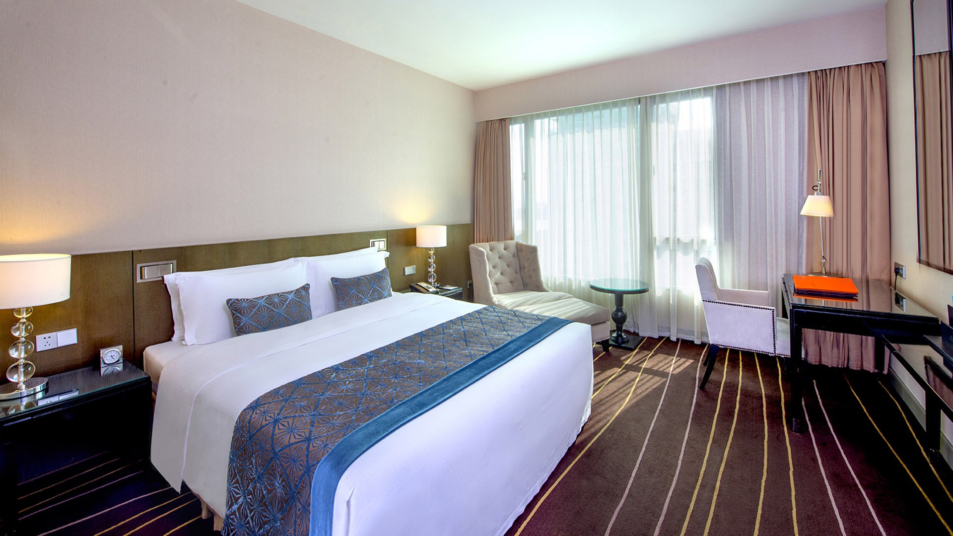 酒店内设 300 间设计精美的客房与套房,多元房型可满足每一位旅人的个性化需求。你可随心选择饱览湖光盛景的湖景房,或是俯瞰都市风貌的城景房。客房内饰采用柔和雅致的莫兰迪色系,搭配多样设计风格,处处彰显现代时尚格调。在此休憩安眠,定能养精蓄锐,以饱满状态应对城中商务事宜。